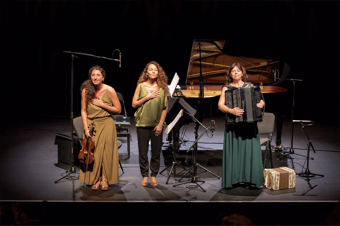 Les trois musiciennes se libèrent des traditions du répertoire classique tout en en conservant les codes et l’exigence. Elles bousculent, ré-interrogent, malaxent, adaptent, interprètent, du simple duo à la pièce symphonique, de l’œuvre romantique au tango, de l’Europe de l’Est à l’Amérique du Sud… et colorent, de leurs timbres personnels une musique vivante, réinventée.